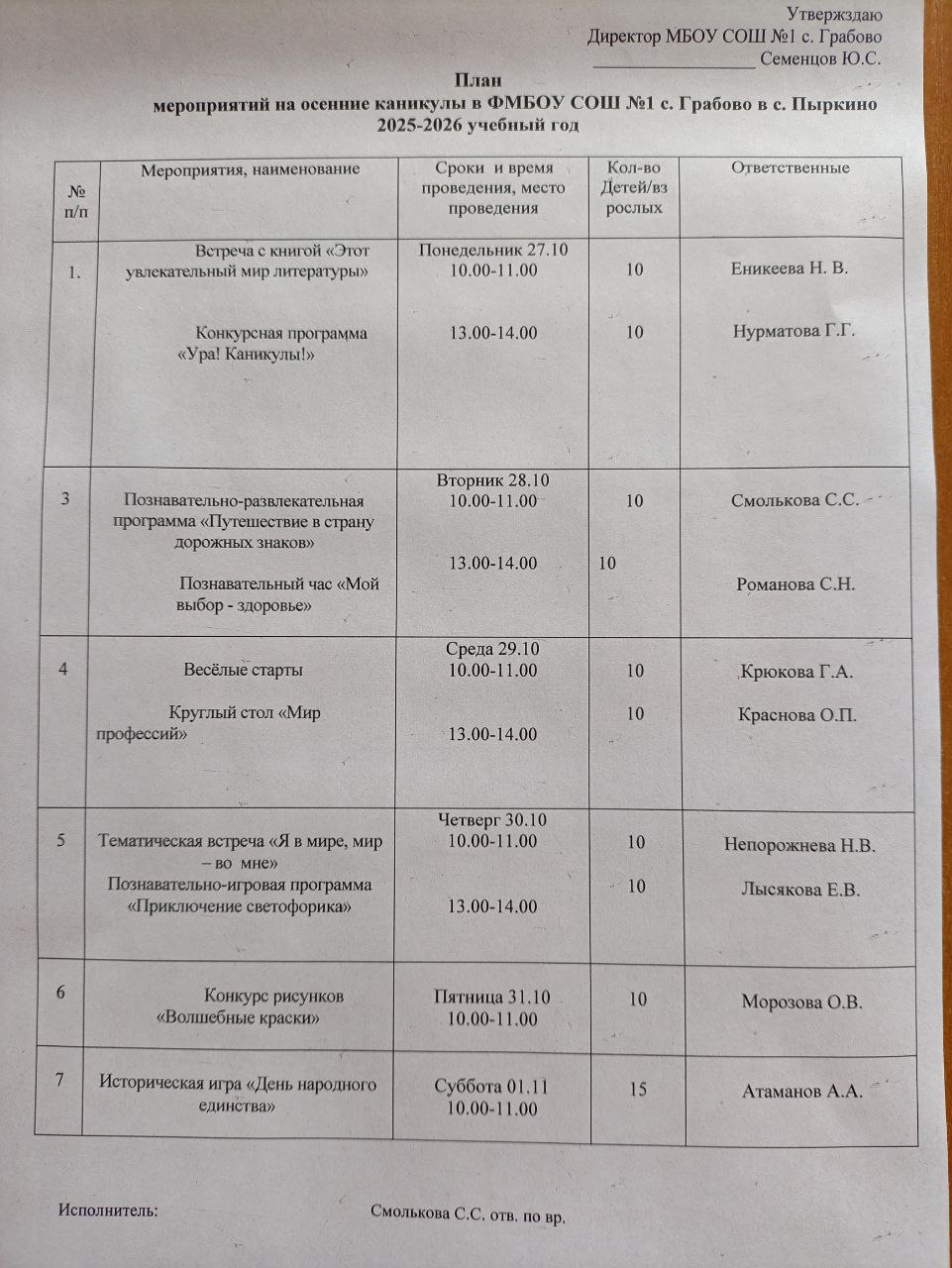 Осень каникулы